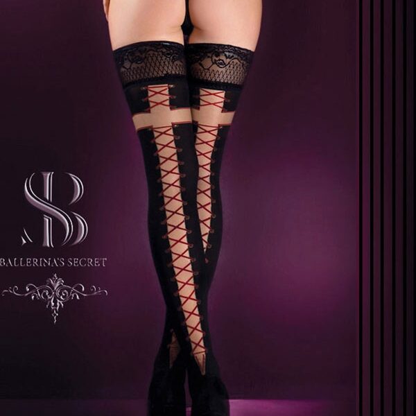 Calze autoreggenti con finte stringhe sul retro 526