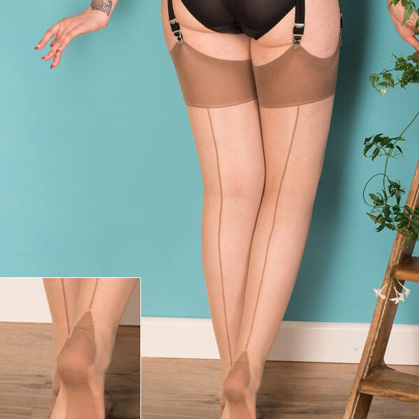 Calze cubane per reggicalze con balza e riga caffè H2074